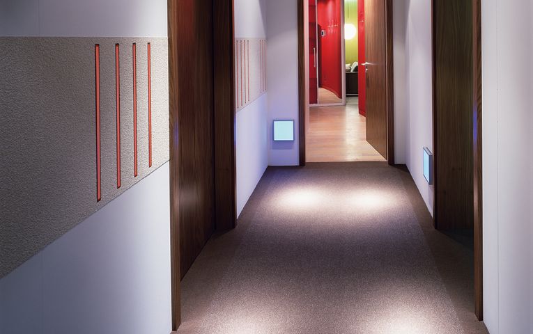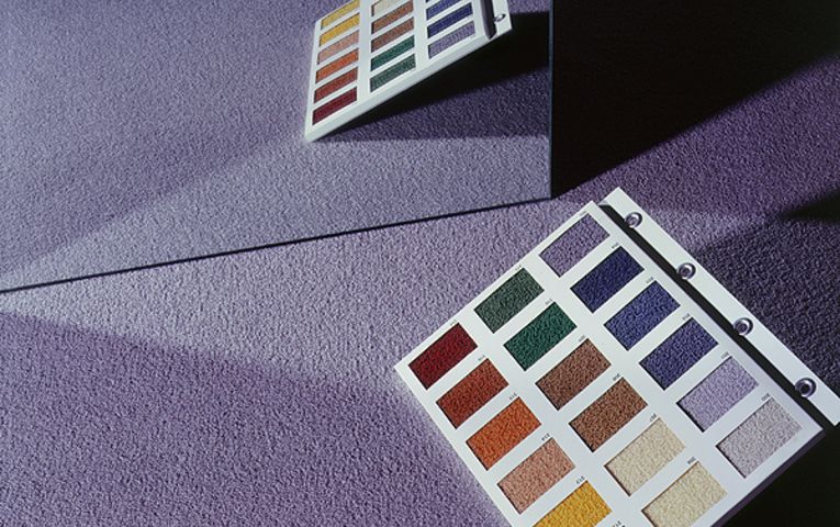 Im Rahmen der Dessinierungsmöglichkeiten können Sie den Teppichboden nach Ihren eigenen Vorstellungen verwirklichen. Neben 72 Standard-Farben lässt sich jeder gewünschte Farbton für jede Qualitätsoberfläche in jeder Kombination einsetzen. Überdies werden durch das Zusammenführen von verschieden angefärbten Einzelfäden durch das gleiche Nadelöhr und die dadurch entstehende Mehrfarbigkeit unendlich viele Farbnuancen erreicht.